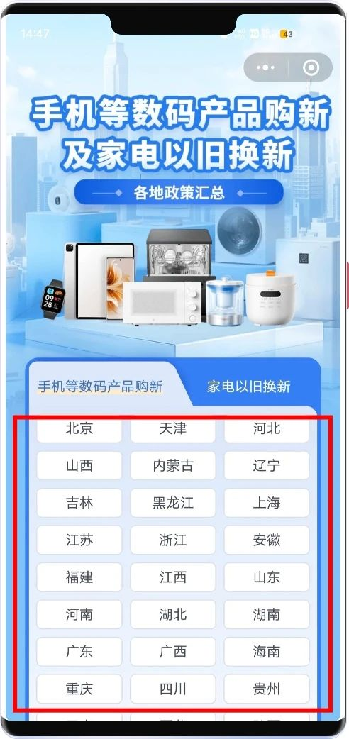 选择你所在的城市,根据提示查询本地政策、领取相关优惠。