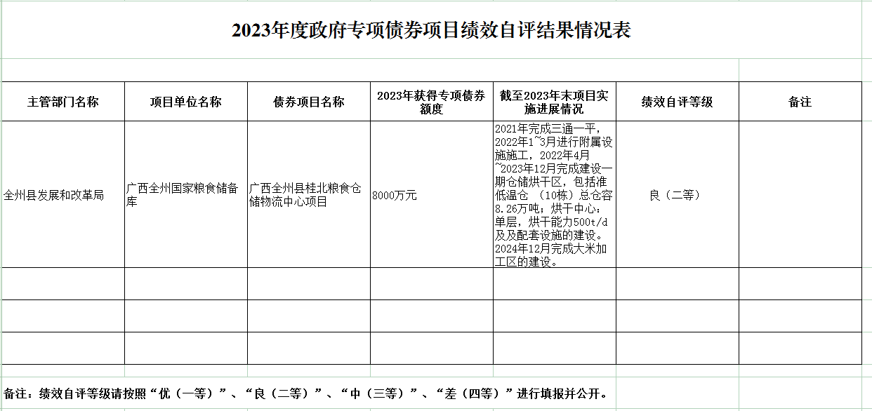 2023年度政府专项债券项目绩效自评结果情况表