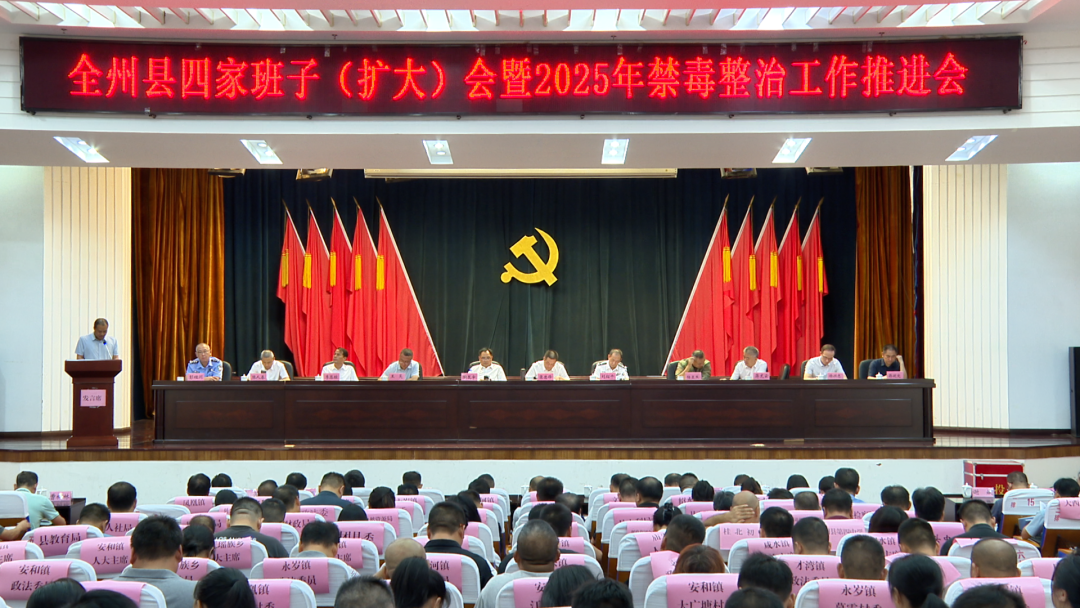 8 月 27 日,全州县召开四家班子(扩大)会暨 2025 年禁毒整治工作推进会,进一步贯彻习近平总书记关于禁毒工作的重要指示精神,落实中央、自治区、桂林市关于加强禁毒工作的系列部署要求。县长梁德锋出席会议并讲话,陶昆宇、陆正杰、王昊等县领导参加会议。