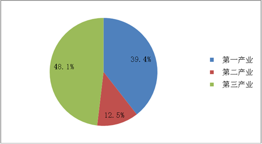 初步核算,全年全县生产总值(GDP)193.09亿元,按可比价计算比上年增长8.0%。其中,第一产业增加值增长8.0%;第二产业增加值增长7.5%;第三产业增加值增长8.1%。三次产业增加值占地区生产总值的比重分别为39.4%、12.5%和48.1%,对经济增长的贡献率分别为40.6%、11.8%和47.6%。
