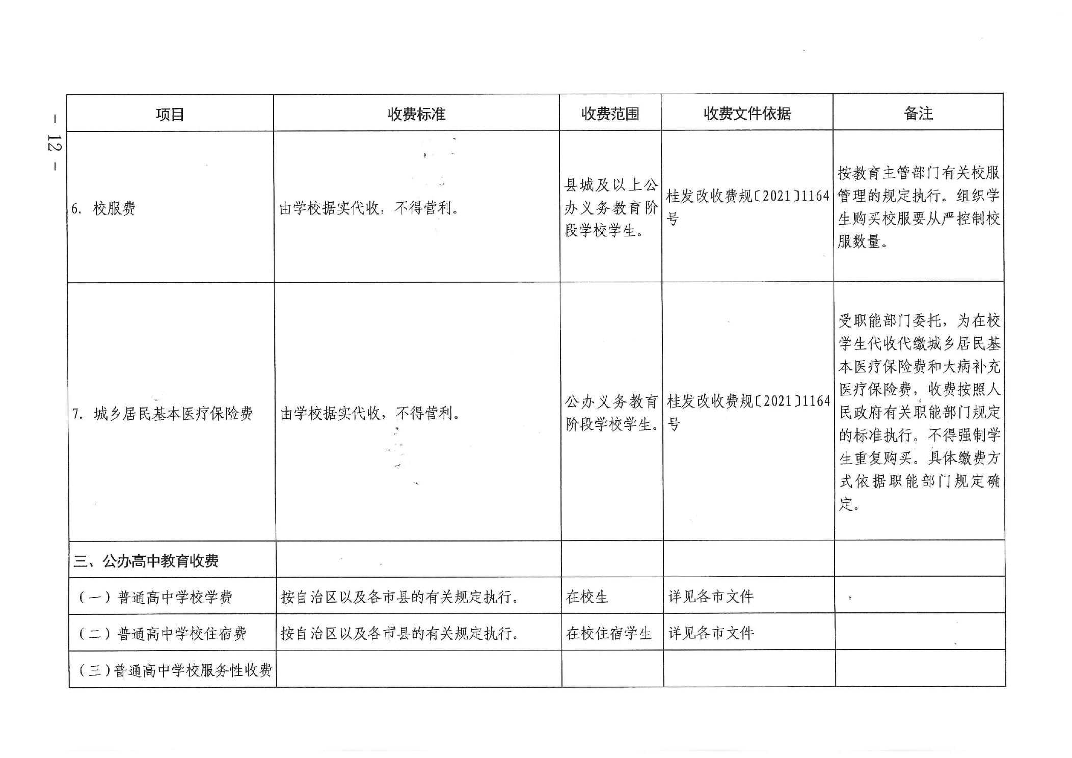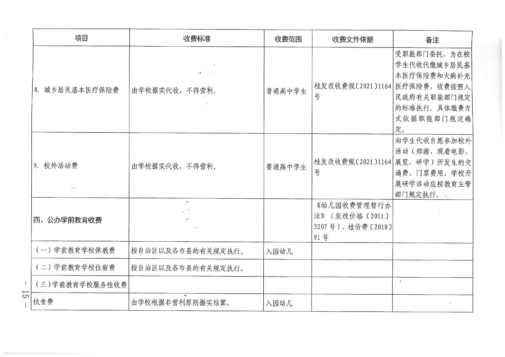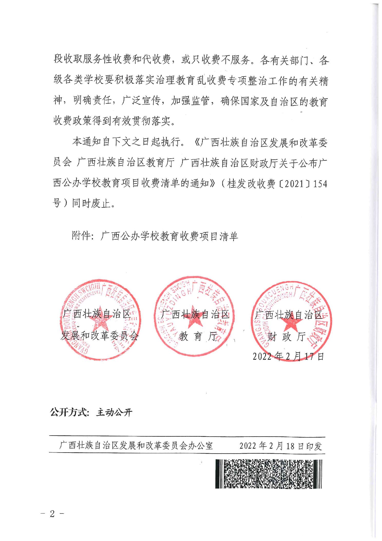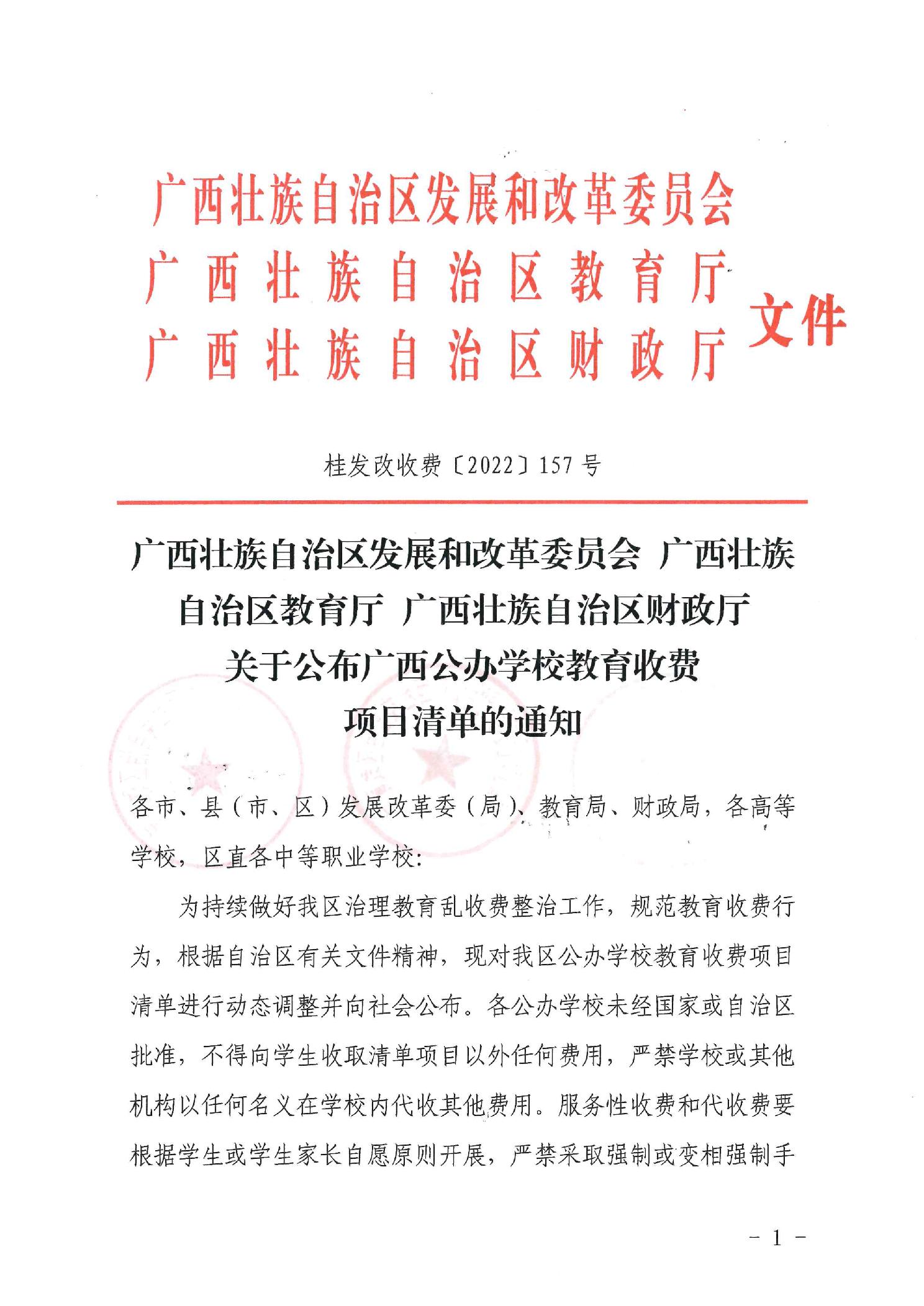桂发改收费〔2022〕157号广西壮族自治区发展和改革委员会 广西壮族自治区教育厅 广西壮族自治区财政厅 关于公布广西公办学校教育收费项目清单的通知