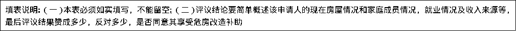 兹有我 村委 自然村 (户主名),家庭人口 人,就业情况: 。经民主评议,对于其享受厕所改造政策,赞成票 张,反对票 张,弃权票 张。 此次会议遵循公平、公开、公正的原则对危房改造户进行民主评议,赞成票数超过总投票数的三分之二,本次会议评定 户为厕所改造对象户。 民主评议小组成员签名: |