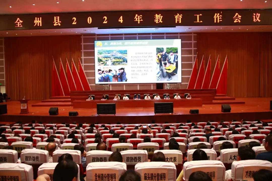 在第40个教师节来临之际,9月9日上午,全州县2024年教育工作会议在县文化中心召开,大家欢聚一堂,共话教育事,同庆教师节。县委书记朱鹃屏出席会议并讲话,县长邓世文主持会议。县领导伍茂民、陶昆宇、王昊、王荣正、张君凤、伍吉东、谭桂松、蒋明华出席会议。