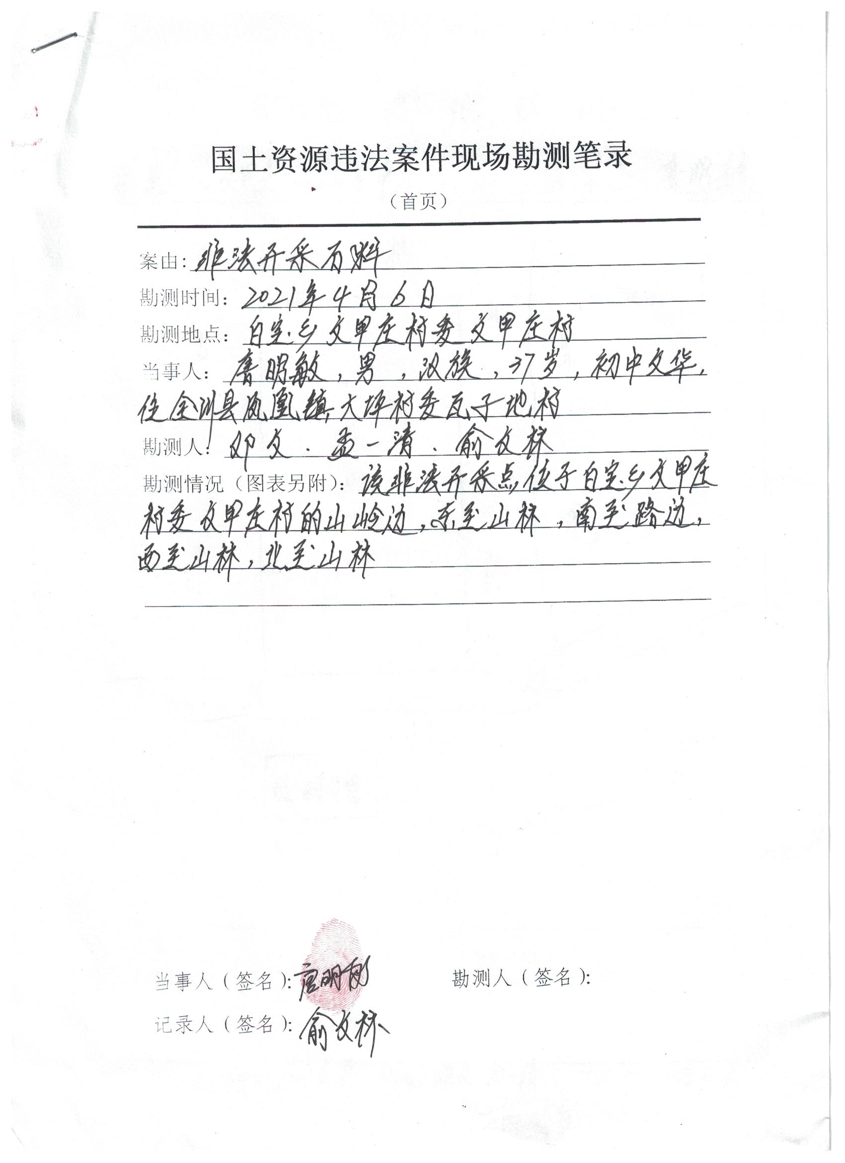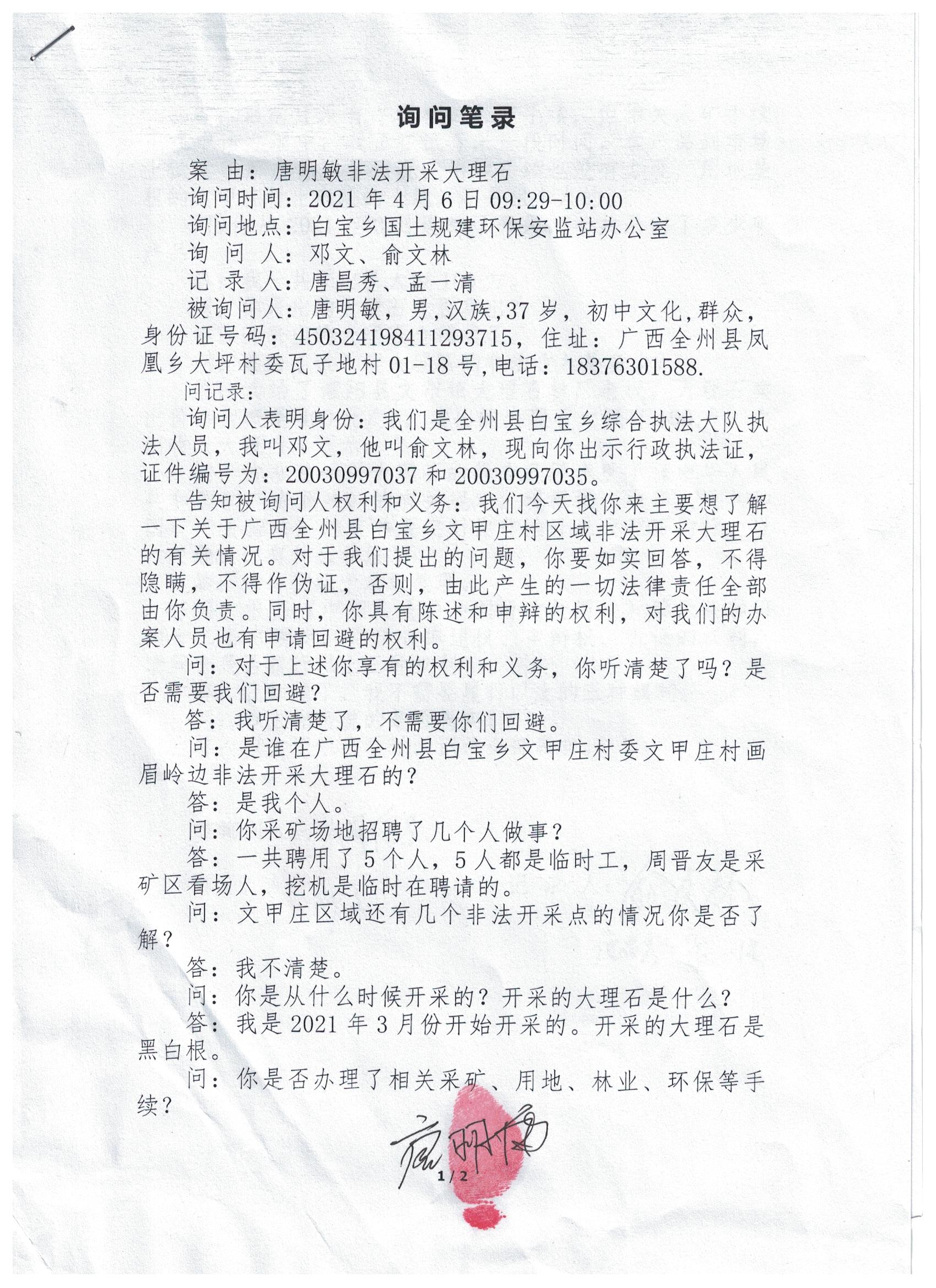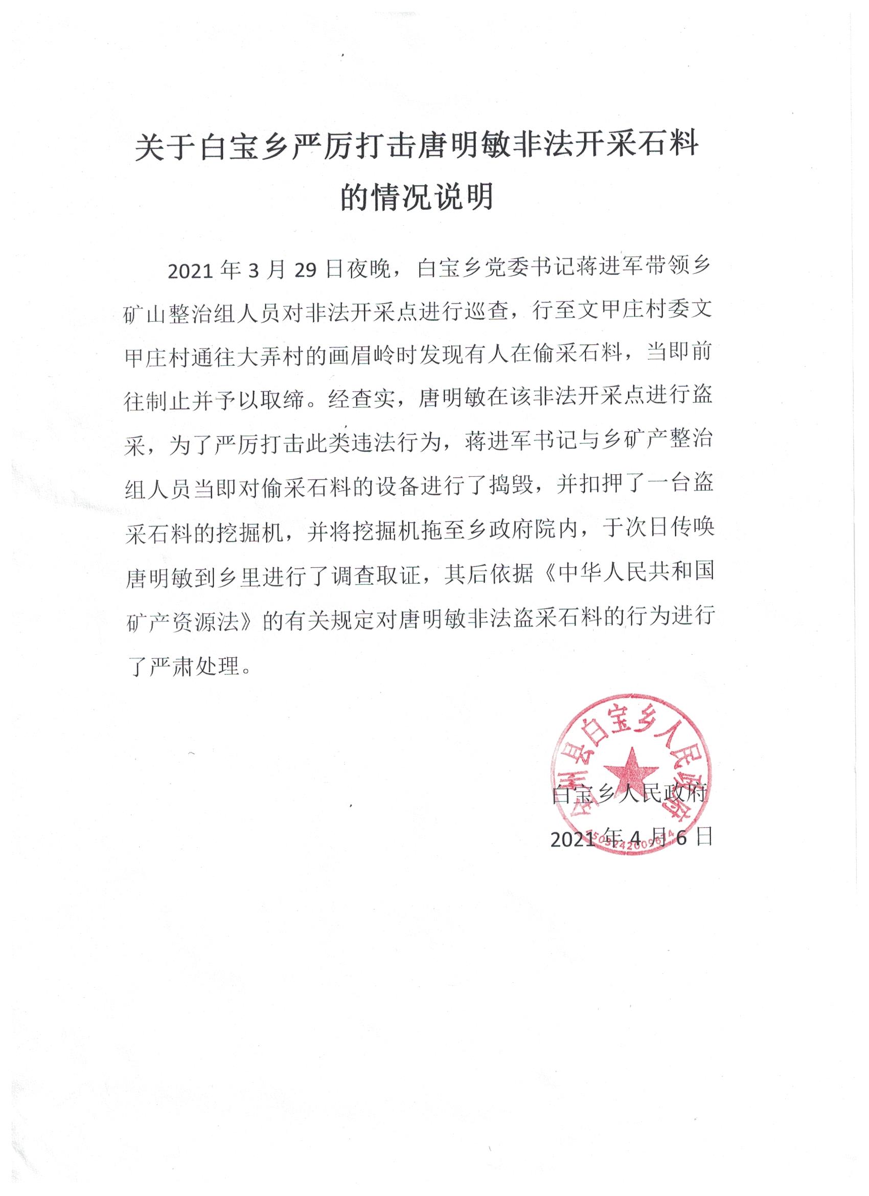 白宝乡人民政府关于严厉打击唐明敏非法开采石料的案件