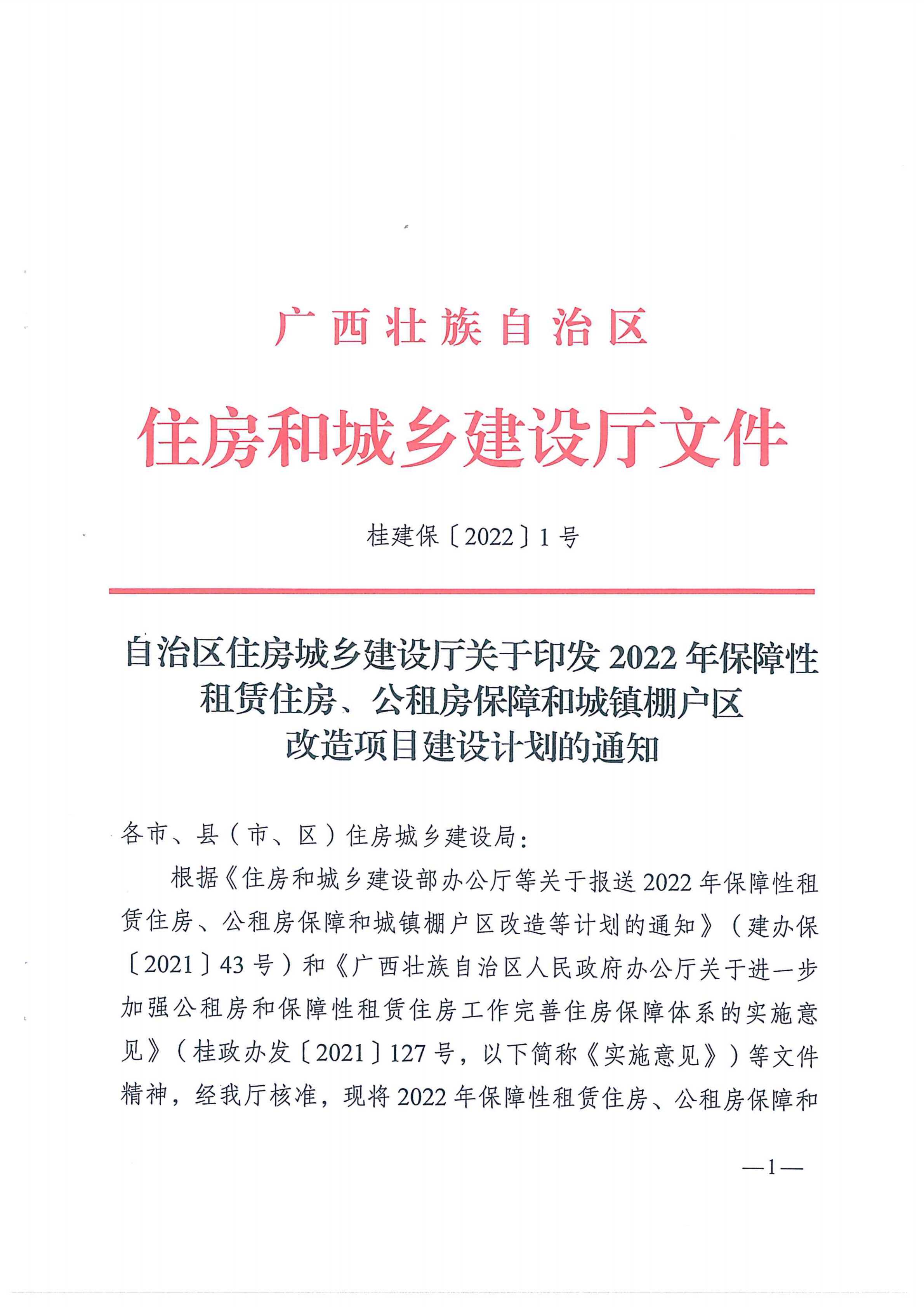 2022年保障性租赁住房、公租房保障和城镇棚户区改造项目建设计划的通知