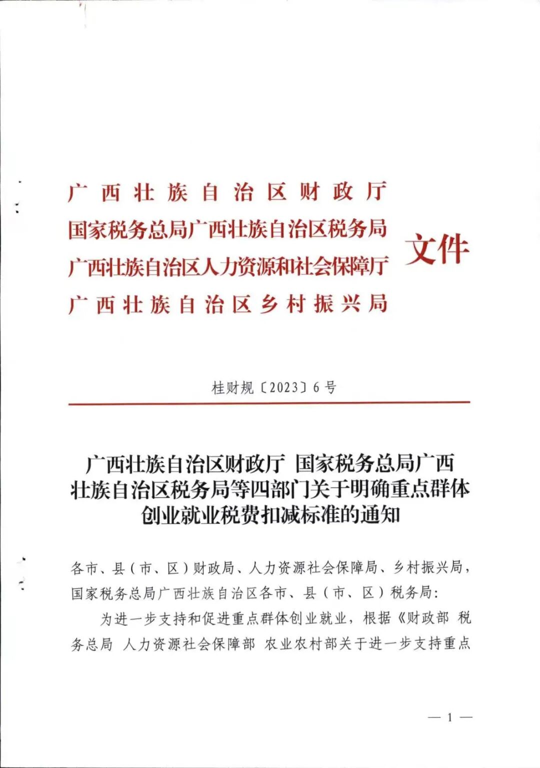 【公示公告】广西四部门关于明确重点群体创业就业税费扣减标准的通知