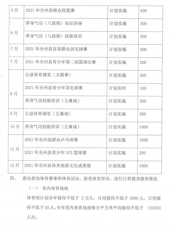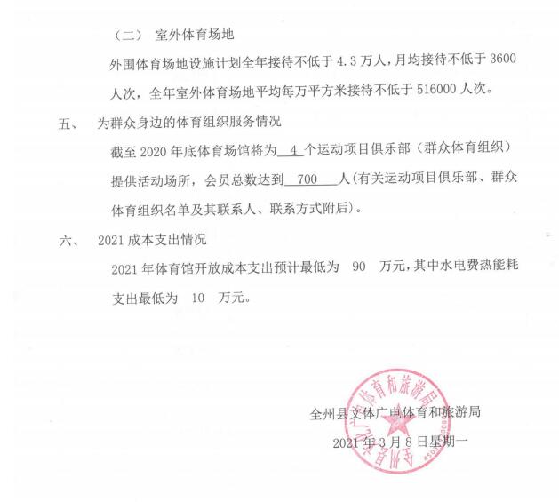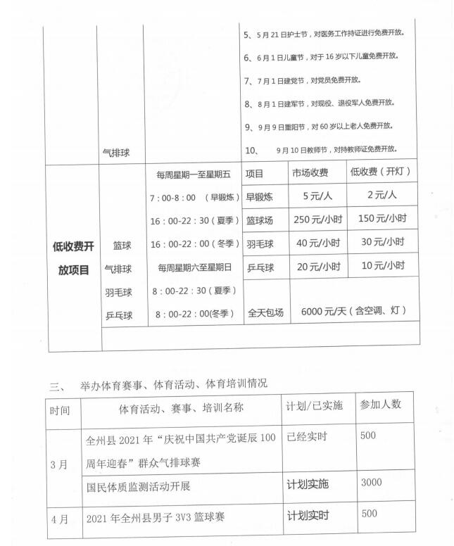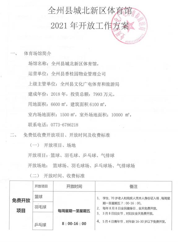 全州县2021年体育馆开放方案