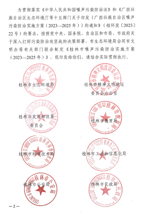 桂林市生态环境局等十七部门关于印发《桂林市噪声污染防治实施方案(2023-2025年)》的函