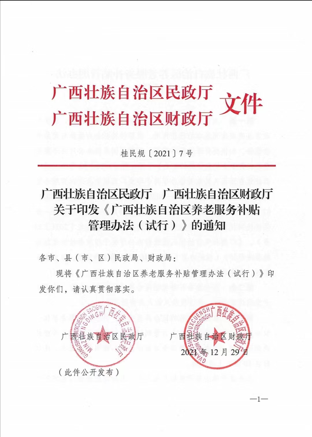 桂民规〔2021〕7号关于印发《广西壮族自治区养老服务补贴管理办法(试行)》的通知(联合).pdf