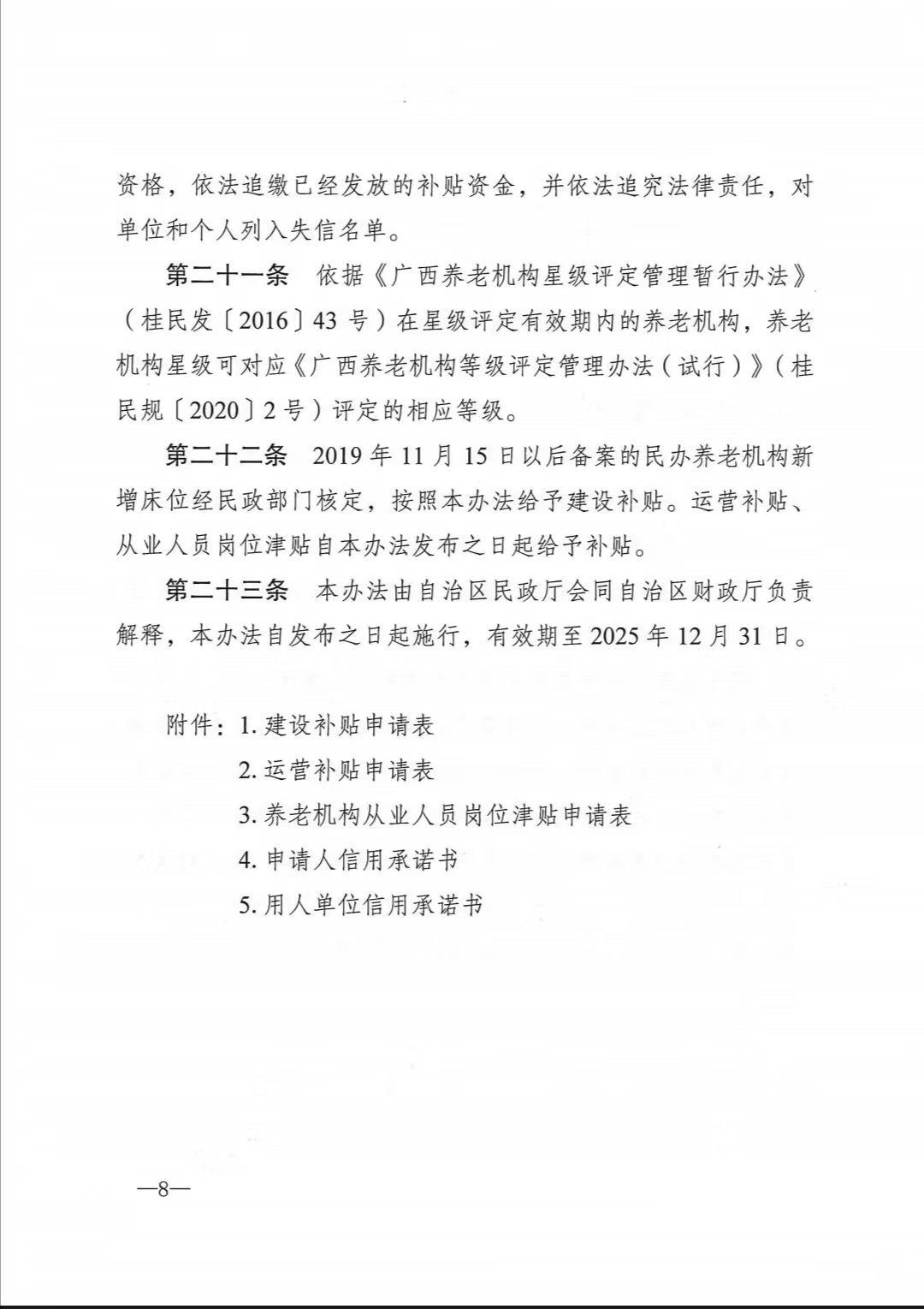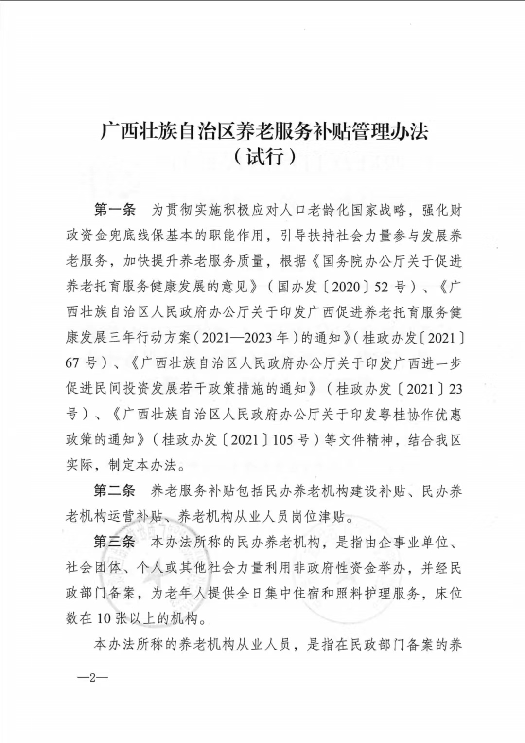 广西壮族自治区养老扶持政策措施——桂民规〔2021〕7号关于印发《广西壮族自治区养老服务补贴管理办法(试行)》的通知(联合)