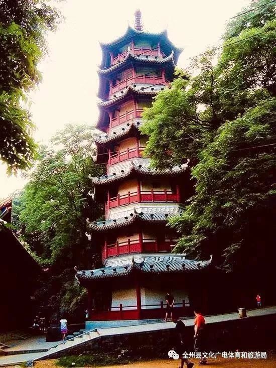 妙明塔位于湘山寺脚下,系宋淳祐年间为安葬全真大师肉身所建,其时香火甚旺,北宋徽宗游南岳时前来顶礼膜拜,南宋高宗钦赐为“妙明塔”,系广西最古之寺塔。