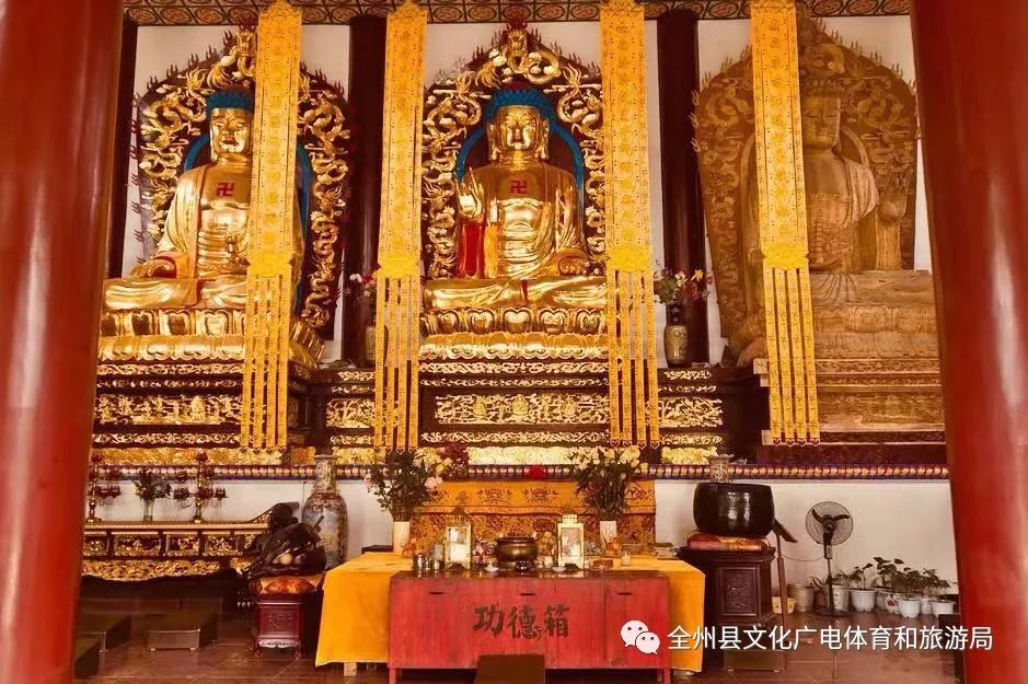 湘山寺——位于广西桂林市全州县城内西隅湘山之麓,初名“净土院”。湘山寺是广西最古老的佛教寺院,素有“兴唐显宋”之美誉,“楚南第一名刹”之雅称。“楚南第一名刹”之雅称,系公元756年唐代高僧无量寿佛创建。宋朝4位皇帝先后5次加封,宋徽宗亲临膜拜;清初著名画家石涛曾住寺为僧21年,留有石刻花图;清朝康熙皇帝御笔亲题崖刻“寿世慈荫”。寺中还有飞来石,洗钵泉、妙明塔、寿佛殿、圆通宝殿、放生池动物石雕群等景观。