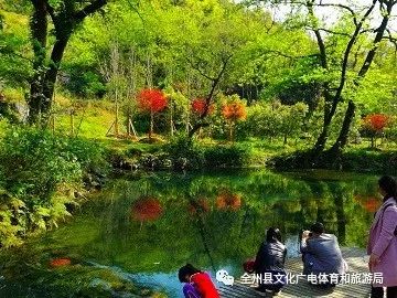 “微风拂水面,涟漪漾微澜。幽深览翠绿,流动赏湖蓝。”它叫龙井河,河水蜿蜒而来。龙井河有三奇,一奇:河水清澈透明,冬暖夏凉。二奇:河里水草丰美茂盛。三奇:河水色彩漂亮,与九寨沟湖水颜色一样,因此赢得小九寨的美誉。