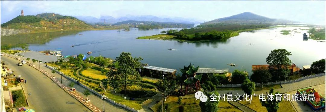 全州三江口又称合江,系发源于海洋山的湘江、都庞岭的灌江和发源于越城岭的万乡河在全州县城东南端相汇而形成的一个半岛沙洲,因像一条流动的鱼,又故名鲸鱼洲。