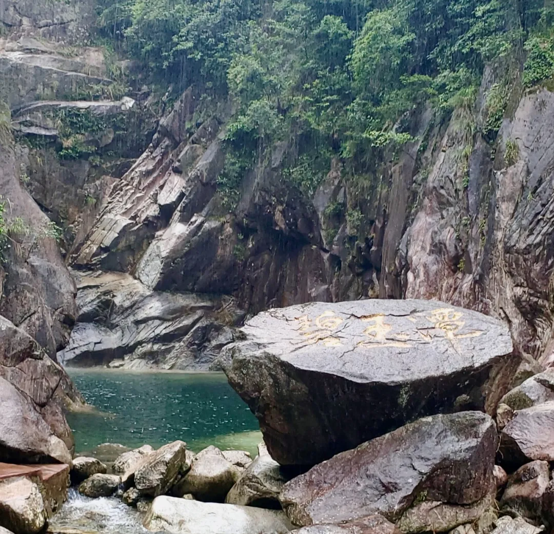 返回途中,我们来到了著名的碧玉潭,玉潭如镜,映照着周围的青山绿树,美不胜收;潭水清澈透亮,宛如一块巨大的翡翠,镶嵌在山间,阳光下波光粼粼,令人陶醉。潭边石头被岁月雕琢得光滑圆润,与玉潭相映成趣;潭边的护栏古色古香,步道鲜艳夺目,昭示着才湾新村走上了康庄大道,明天会更美好。