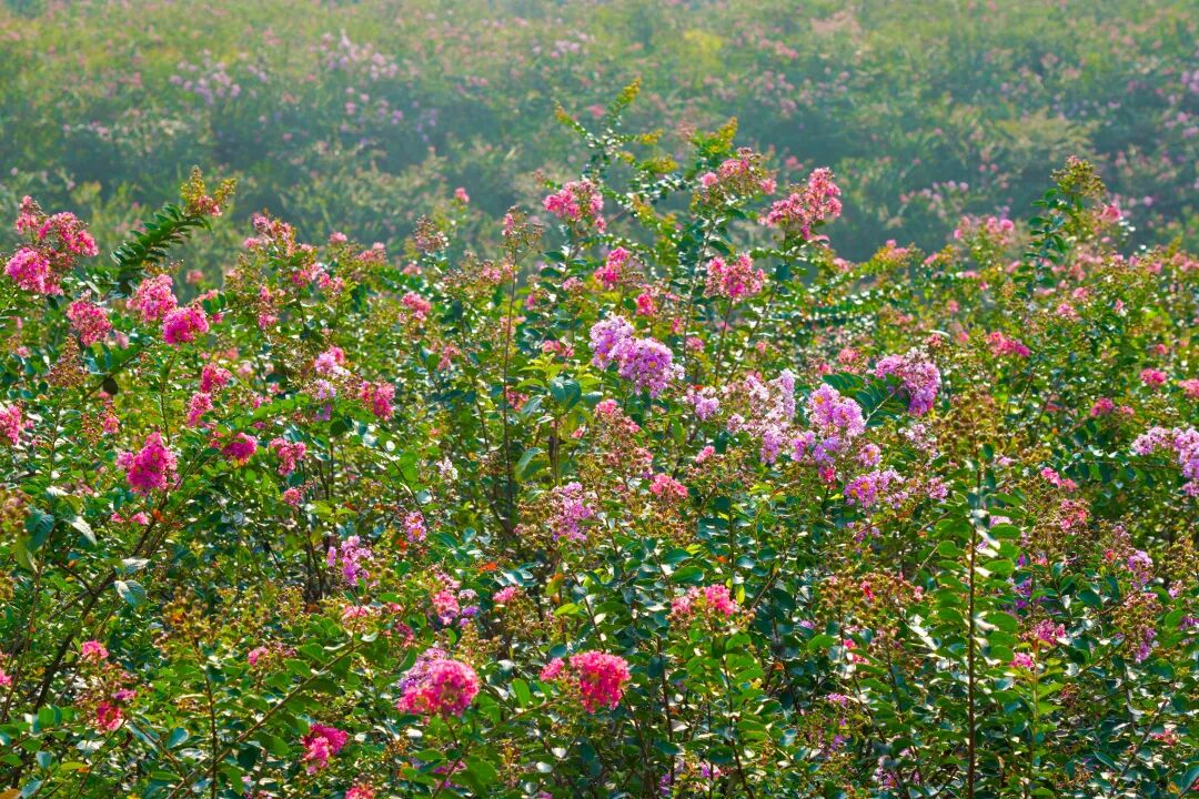 近期,全州县万亩花卉基地的千亩紫薇花盛开,引来了众多市民前来休闲、打卡、留影。