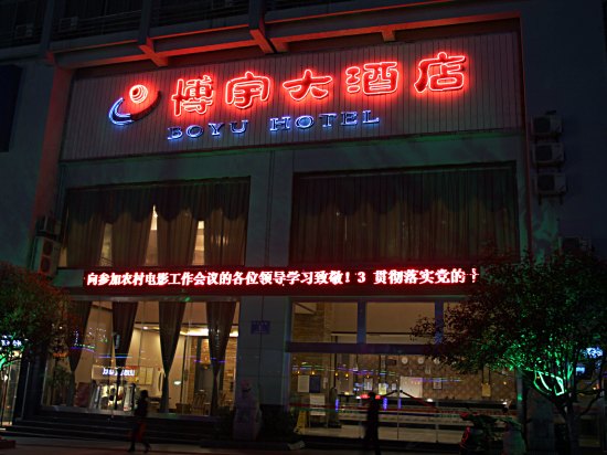 全州县博宇大酒店位于全州县城繁华商业圈中心,为八桂门户全州首家(涉外)三星级旅游饭店,酒店成立于2005年4月18日,十四年来与时俱进,稳健经营,得到了社会各界的大力支持。酒店二、三楼餐厅设有高档优雅的豪华包间,能容1000余人就餐的喜宴大厅两个,豪华大气、宽敞明亮;价廉物美的特惠时菜、中晚餐正宗的全州家常菜和地道的湘粤桂系菜任君选择。4—9楼设豪华套房、商务行政套房、豪华单人间、豪华标准双人间等客房133间,一次可接待客人228人。酒店所有客房设独立WIFE,房间独立调控空调、免费国内长途电话及宽带上网、有线电视网络、高清3G电视、迷你酒吧、自动喷淋消防系统等现代化服务设施齐备,舒适雅致;特色自助洗衣为您带来洗衣之便;提供40多个住宿停车免费车位。7楼设有能容30人的小型会议室,10楼设有能容200多人的中型会议室。全体博宇人一致秉承“服务第一 宾客至上”的理念,用餐及住宿享会员折上折。