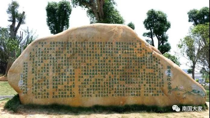 湘源文化公园的文字石刻分两种,一种是电脑集字,主要简介全州的历史、古代全州名人事迹,碑刻易认、经济。易认是电脑字的优势,说它经济,主要因为在公园路边的大理石栏杆的廊柱上,都刻有名人介绍,没有浪费空间和材料;另一种是书法石刻,这个值得一看。如公园大门上的石刻书法对联,是中国书协原主席沈鹏先生挥就的草书,大门上还有现湖南省书协主席鄢福初的行书对联。在镇湘塔下的道路旁,还有刘文华的石刻隶书,以及龙开胜、陈羲明等书法名家的石刻行书作品,他们都是当代中国书坛的翘楚。公园内还有全州籍书家的一些作品。这些书法石刻,以书载诗,诗词内容也是歌咏古全州的历史和盛景,且诗、书俱佳,成为一道不可多得的风景,是一场永久性的诗词展和书法展,全州人随时随刻都能去欣赏和品咂。