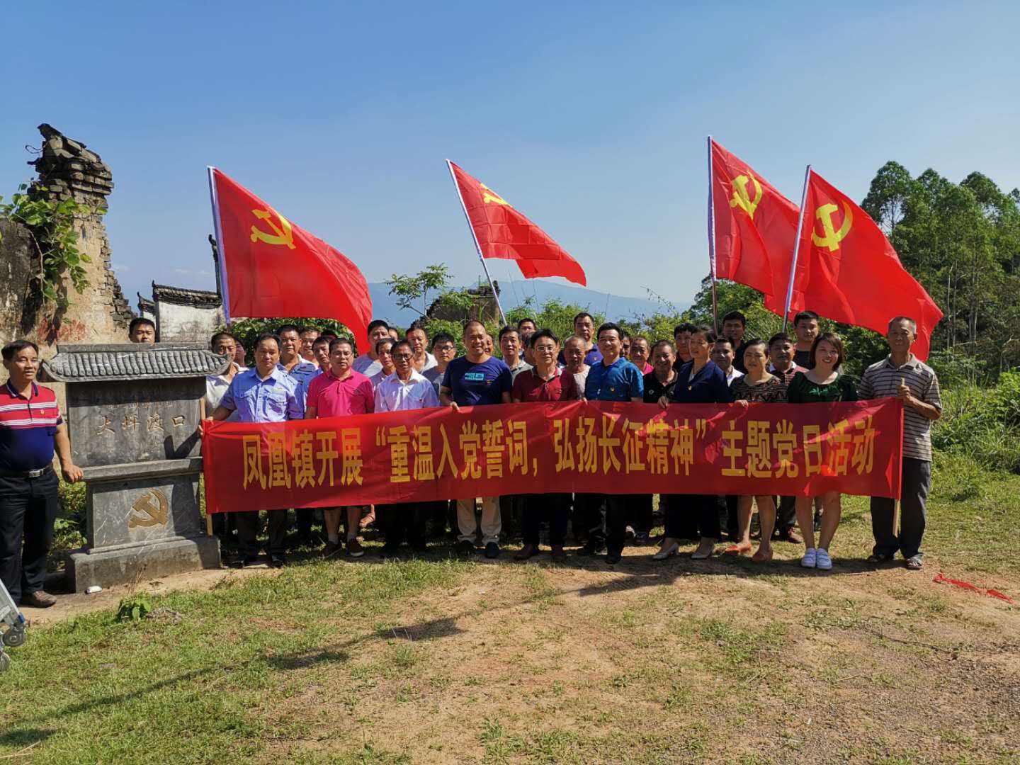 鲜红党旗迎风飘,重温誓词忆初心。凤凰镇各党组织利用党员大会组织支部党员在凤凰嘴渡口、大坪渡口等当年红军渡江遗址重温入党誓词。面对鲜红的党旗,全体党员紧握右拳,满怀激情,齐声宣读入党誓词,重温入党誓词的神圣时刻。铿锵有力的宣誓声响彻空中,让现场每位党员深刻感受到肩上的责任和使命。激励广大党员干部以奋发有为、昂扬向上的精神状态和工作热情,团结带领广大党员群众,进一步解放思想,务实拼搏,为建设美丽凤凰再立新功。