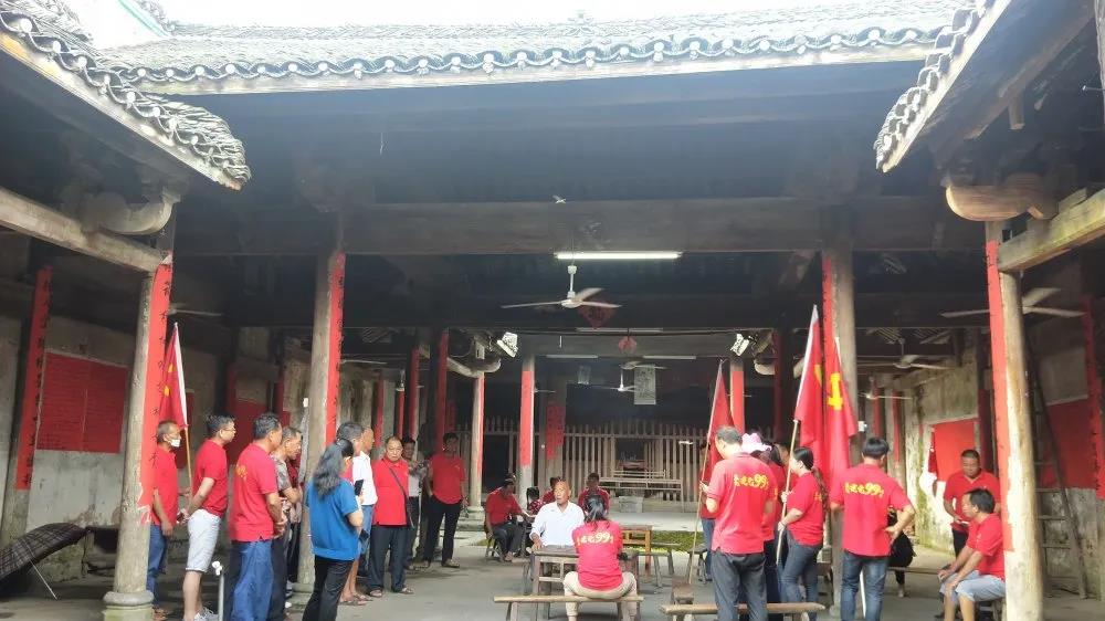 活动人员参观圳头村瑞长屯大公堂,听村里面老人讲述大公堂的历史文化