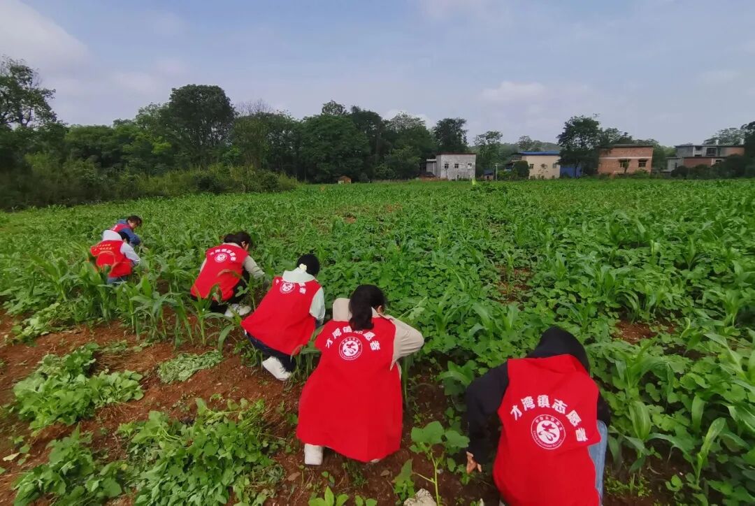 才湾镇志愿服务队为缺乏劳动力的脱贫户除草,助力春耕春种