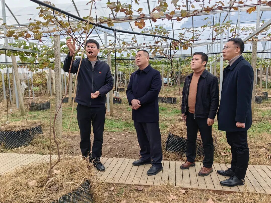 县委副书记、代理县长梁德锋到毛竹山标准化葡萄产业基地调研