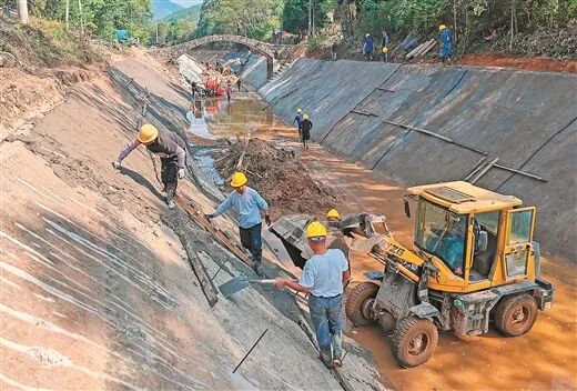 10月14日,记者在两河镇灌江渠道内看到,施工人员抢抓施工“黄金期”,采取人工与机械联合作业的形式,正在对灌江渠道进行清淤、补漏及三面光施工,现场呈现出一派热火朝天的工作场面。