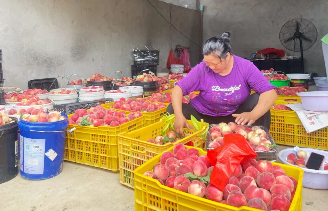 6月9日,记者来到位于两河镇鲁水村的全州县红色果乡桃李产业示范区,只见颜色艳丽的桃子挂满枝头,村民们正忙着采摘、打包、发货……
