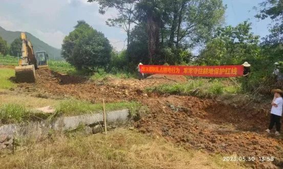 5月30日,两河镇组织联合执法队伍对源东村委黄花岭自然村农户邓某违法占用基本农田修路情况进行专项整治。