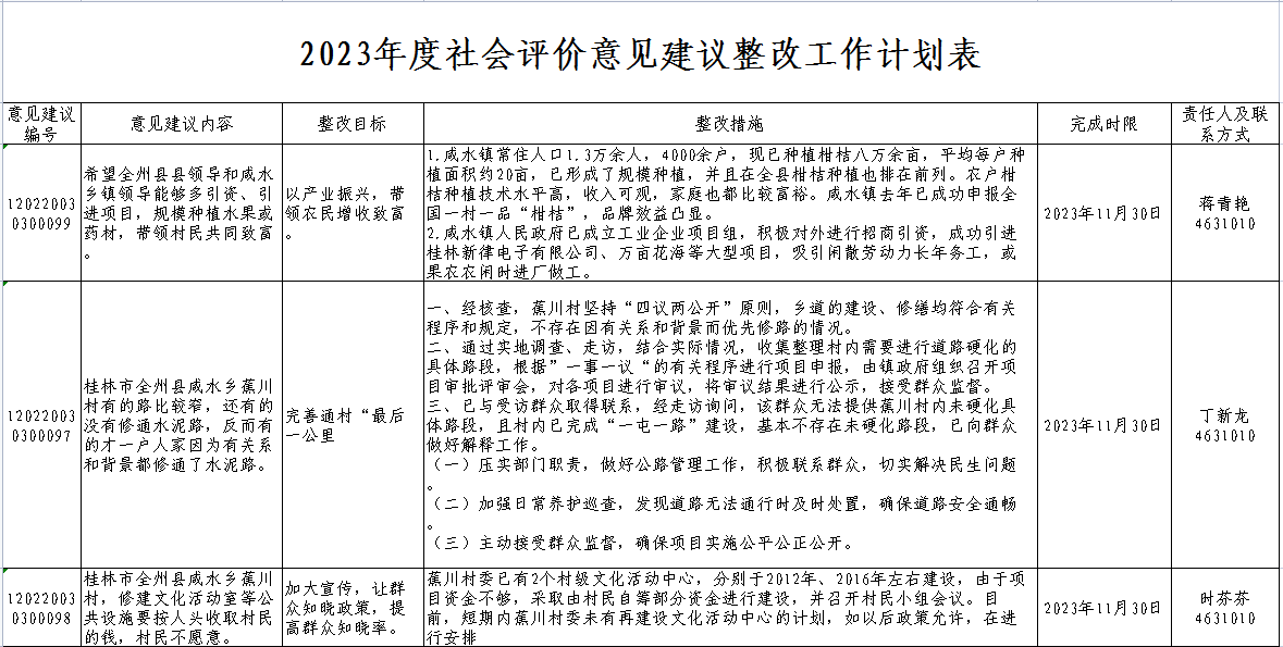 群众利益无小事,抓好整改惠民生。在2022年自治区绩效考评民意调查中,相关人员共提出了3条涉及本单位/本地的意见建议。我们高度重视群众的合理诉求,详细了解事情原委,坚持依法依规,实事求是原则,制定整改计划,解释相关政策,现向社会公布,公示期自2023年5月31日至6月30日。敬请广大群众予以监督,督促整改工作取得成效。如有异议,请向整改单位及责任人反映。