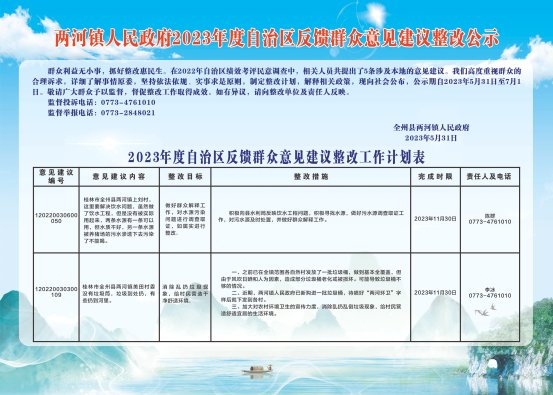 两河镇2023年度社会评价意见建议整改工作计划