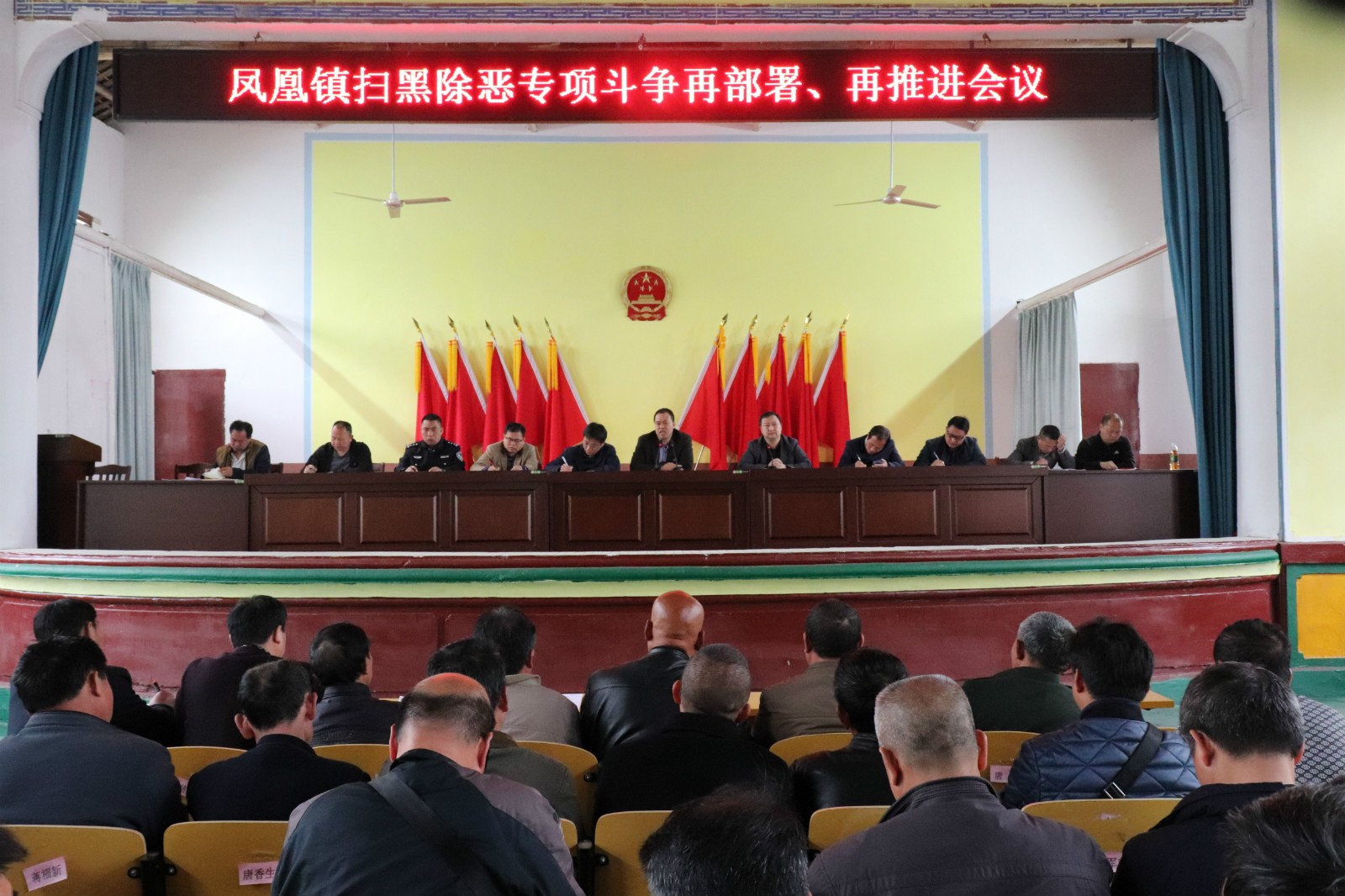 为全面推进扫黑除恶工作的深入开展,4月13日,凤凰镇召开扫黑除恶再部署、再推进会议,全体政府干部,镇直单位负责人,县、镇派工作队员,各村干部共180余人参加了会议,会议由镇长胡年华主持。