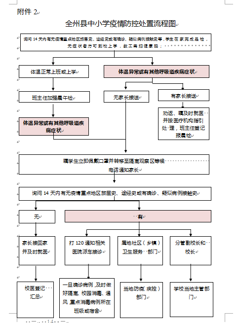 附件:1.全州县各类学校新冠肺炎疫情应急处置预案
