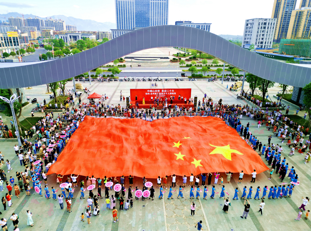 10月1日,全州县通过举行千人旗袍秀、舞蹈、古筝弹奏、中华武术表演、唱红歌等内容丰富,形式多样的活动,共同庆祝伟大的中华人民共和国73岁生日。