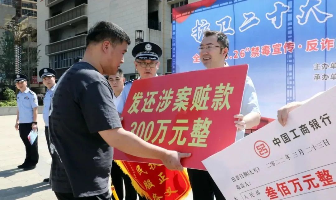 各与会领导和民警代表为失主发还追回资金和物品