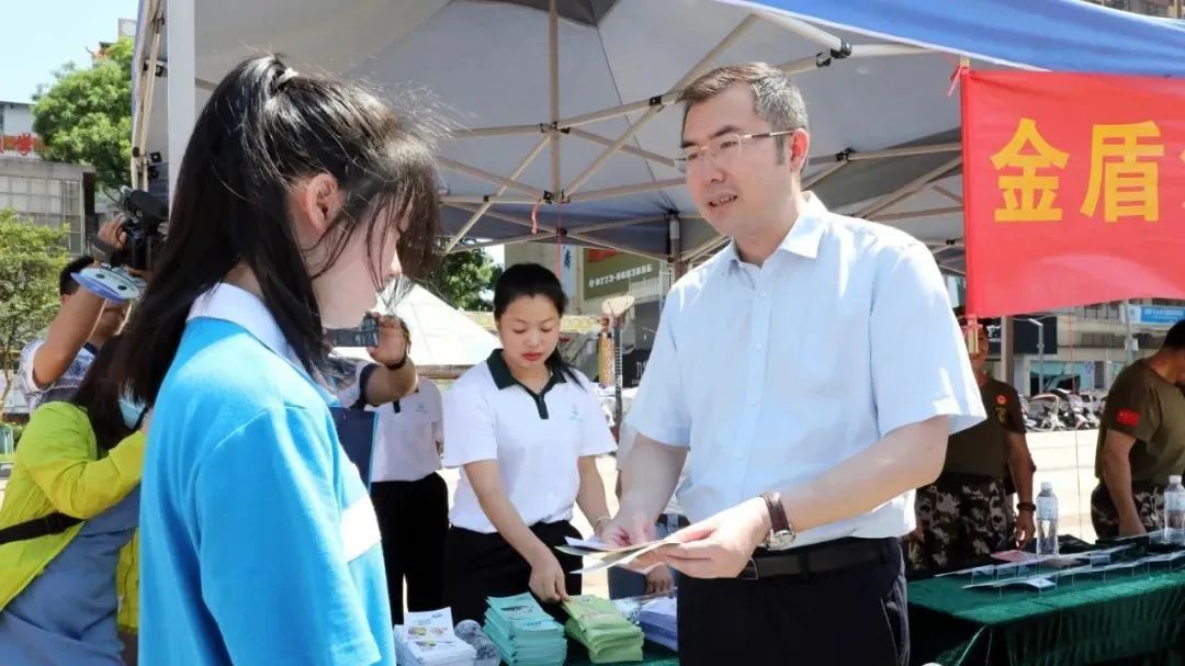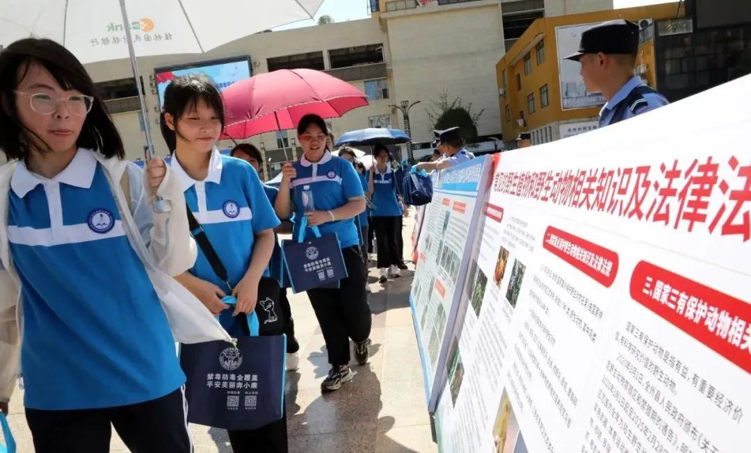 大会结束后,与会人员被公安机关图文并茂的宣传展板和现场法制宣传点所吸引,他们或驻足在展板前逐一欣赏,或围站在一起,认真聆听公安民警和工作人员关于禁毒、交通、反诈、生态环保、扫黑除恶等方面法律知识的介绍,享用法制大餐,进一步提升自我防范能力和水平。