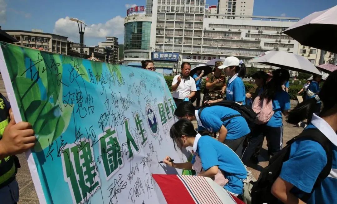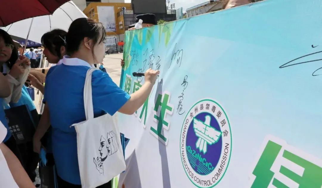 大家主动参与禁毒万人签名活动,以实际行动向毒品说“不”