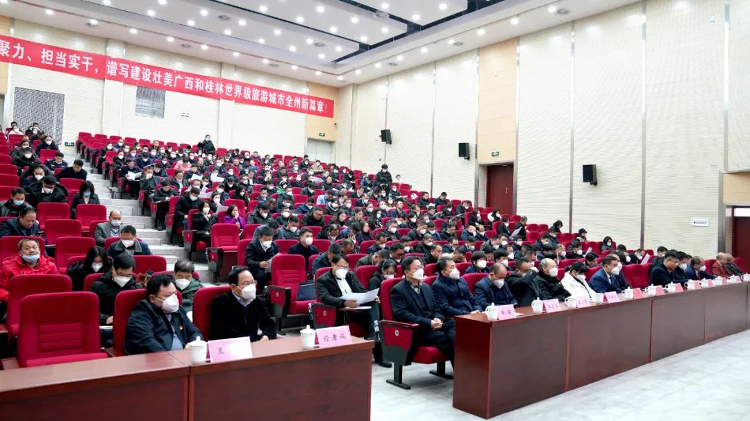 县委副书记、县长邓世文回顾我县 2022 年经济工作。他指出,2022 年,全州县打好了“稳中求进攻坚年”攻坚战,顶住了经济下行压力,保持了经济社会大局稳定。邓世文强调,2023年,我们要突出项目建设和招商引资两大抓手,抓好八个方面工作。一要全力推进红旅融合,加快服务业恢复增长。二要全力推进工业振兴,加快产业扩量提质。三要全力推进乡村振兴,加快建设农业强县。四要全力推动项目建设,积蓄蓬勃发展动能。五要全力推动新型城镇化,建设宜居宜业城市。六要全力推动改革开放,增强发展动力活力。七要全力办好民生实事,提高人民生活品质。八要全力统筹发展和安全,坚决守牢安全底线。
