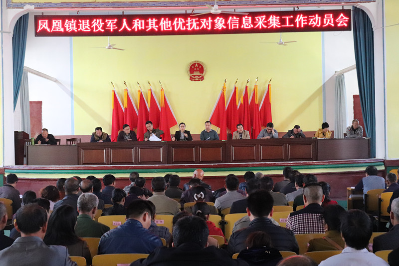 为深入学习贯彻上级关于做好退役军人和其他优抚对象信息采集工作的决策部署,安排该镇退役军人和其他优抚对象信息采集工作,进一步摸清底数,建立健全服务对象档案和数据库,切实提升该镇退役军人规范化服务管理工作水平。10月30日上午,凤凰镇召开退役军人和其他优抚对象信息采集动员会,全体村“两委”干部,镇干部,镇直干部,第一书记参加了会议,大会由人大主席文中芳主持。