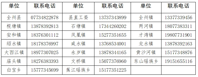 四、欢迎大家积极参与监督,共同营造廉洁征兵的良好环境。全州县人民政府征兵办公室廉洁征兵监督举报信箱地址:全州县桂黄北路397号 电话:0773-4822878/6969180。