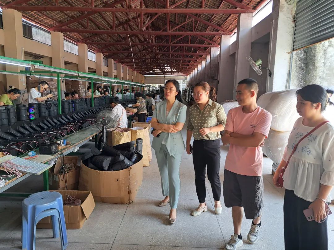 调研组走进咸水镇新律电子厂,与负责人亲切交谈,通过实地查看、听取汇报等方式,了解了该厂的生产经营模式、妇女创业、就业、工作等情况。企业负责人介绍道,今年厂里与咸水镇妇联联动,推出了“宝妈岗”,让在家接送小孩的妇女能弹性工作,灵活就业,让更多的女性既能照顾家庭,也能稳步增收,针对部分文化层次较高的女性,厂里请了专人定期开展技术培养,提供考证评级的费用,让她们都能掌握一门生产技术,成为技术骨干。