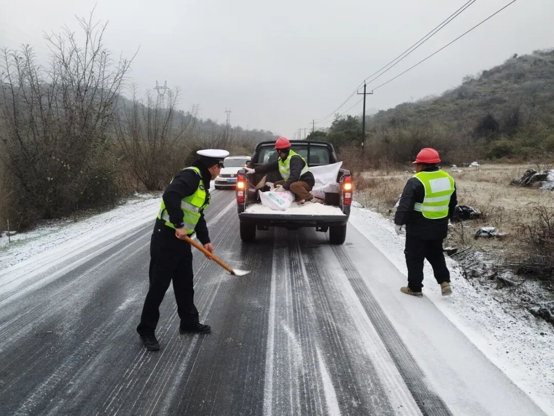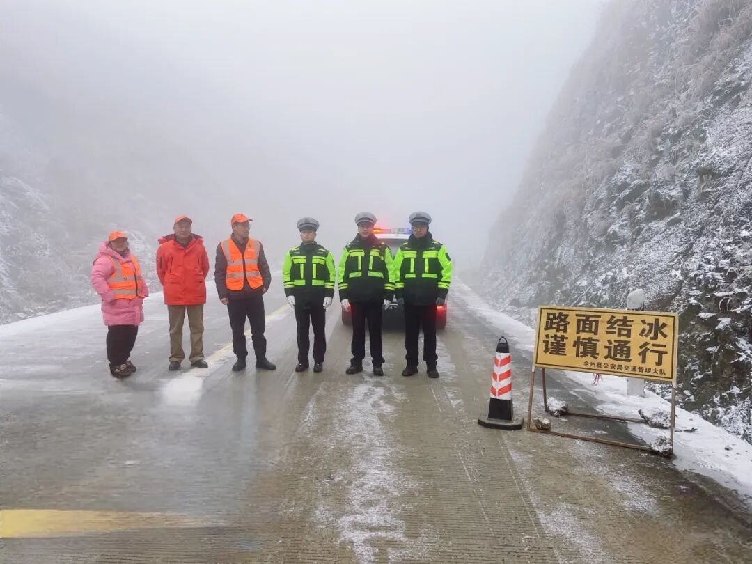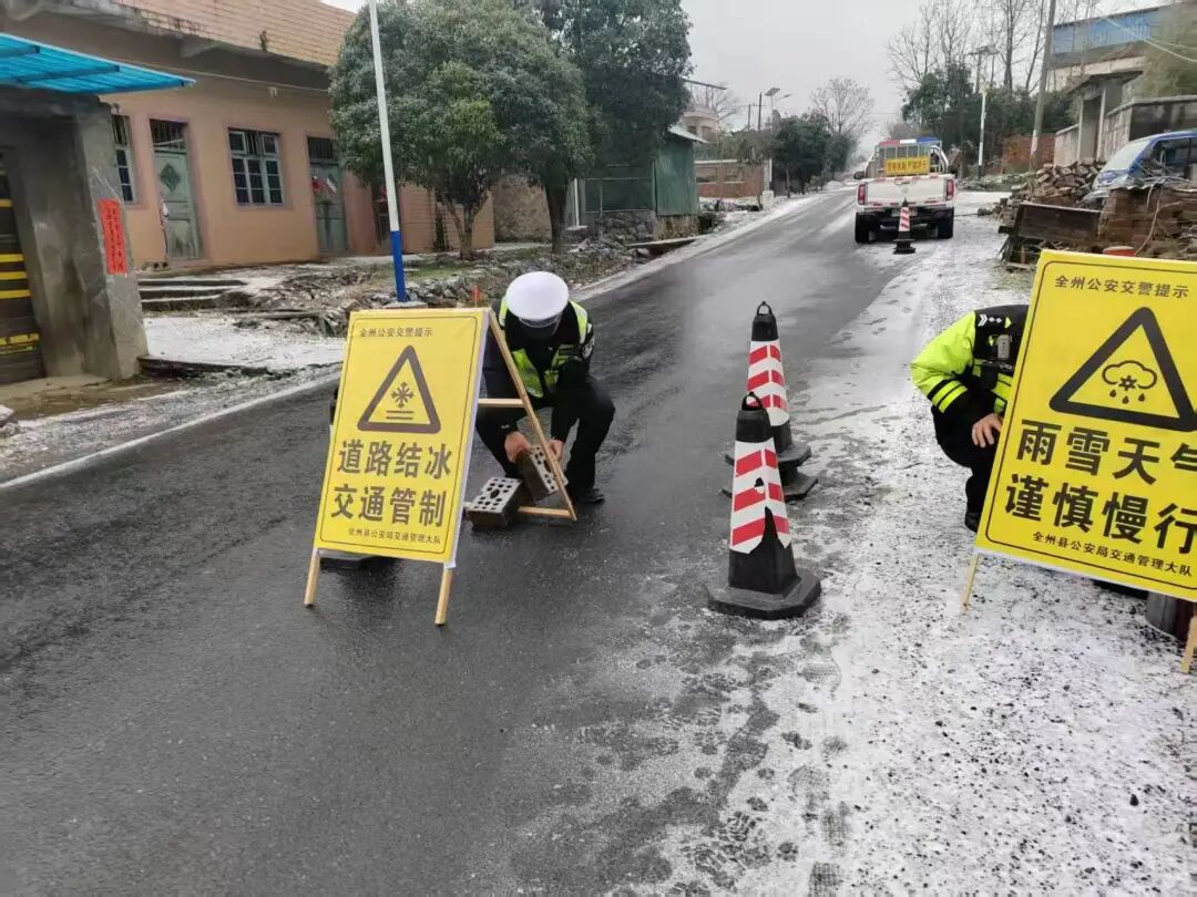 全州县公安局迅速启动应急预案,交管大队联合才湾派出所、咸水派出所、公路养护中心等多方力量,顶风冒雪、分点作战,在冰雪中筑起一道道温暖而坚实的“平安防线”。