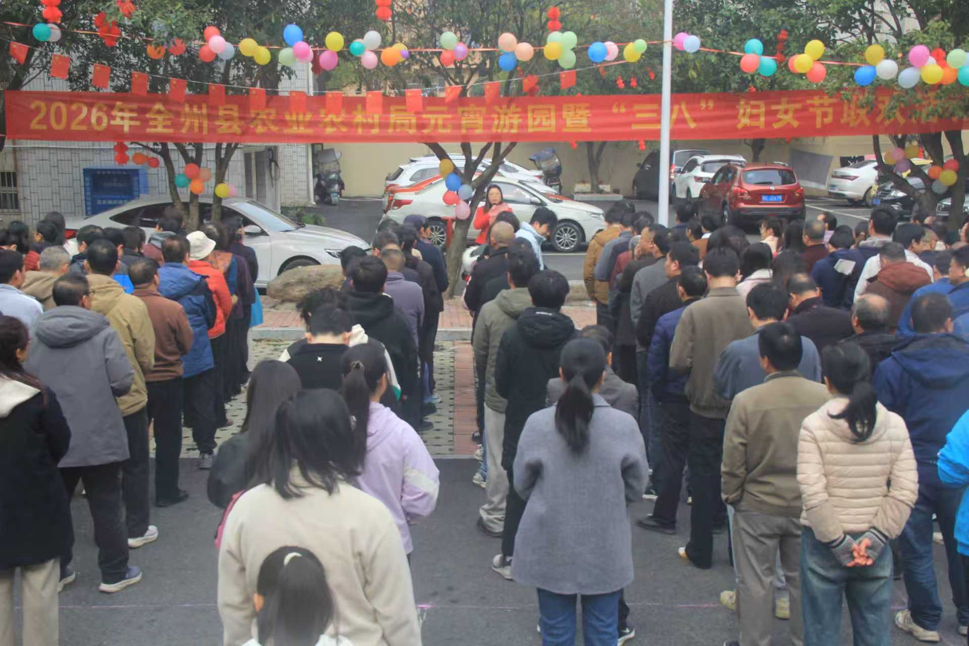 3月6日上午,全州县农业农村局机关大院人头攒动,加油声、欢笑声此起彼伏。由该局工会精心组织的主题为“喜乐闹元宵·巾帼绽芳华”2026年元宵游园暨三八妇女节联欢活动热闹开场,全局230多名干部职工欢聚一堂,共庆佳节。