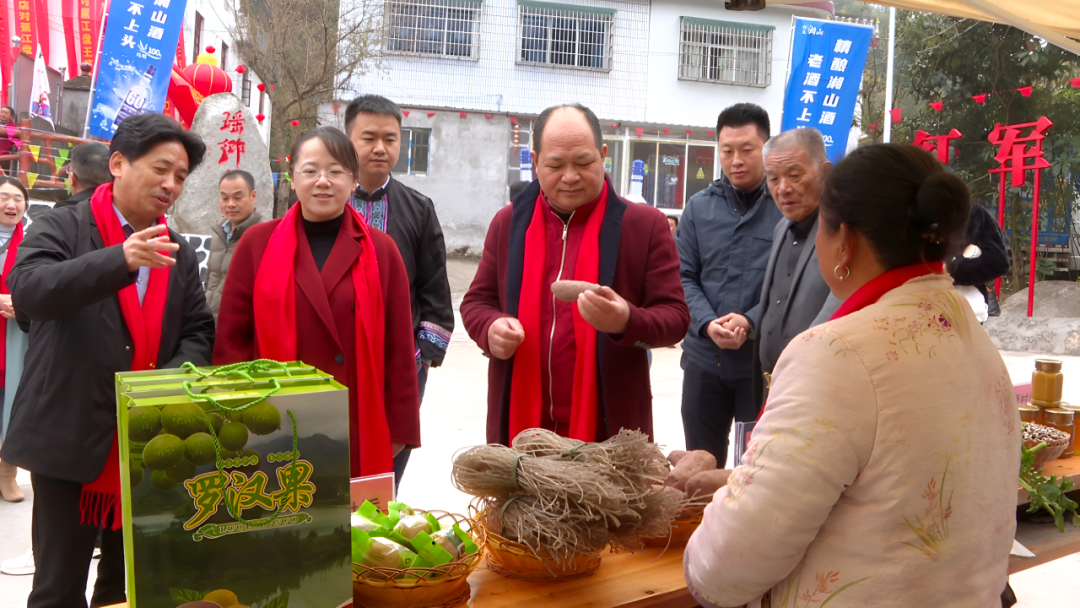 传统焕活力,欢歌迎客来。当天在蕉江瑶族乡大源村,不仅有热情洋溢的瑶族歌舞和非遗舞狮等特色文艺表演,还设置了特色农产品展览,集中展销蜂蜜、米粉、罗汉果等瑶乡好产品,吸引了众多游客驻足观赏、品尝采购。
