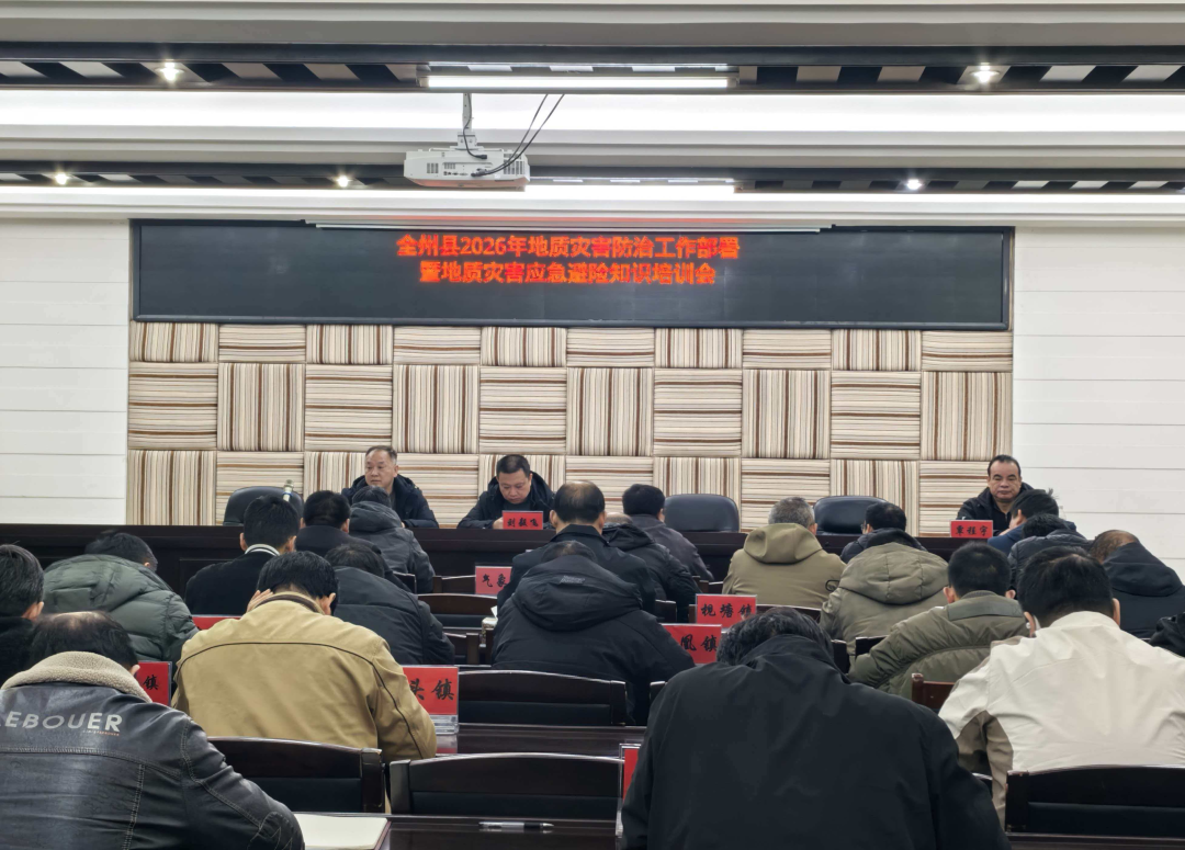 3月9日上午,全州县2026年地质灾害防治业务培训暨工作部署会在县自然资源局三楼会议室召开。县直有关单位、各乡(镇)分管领导及业务骨干、部分村级监测员代表参加会议。