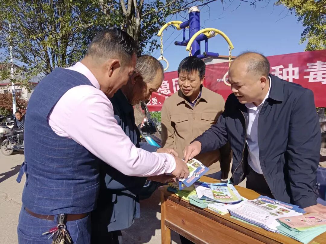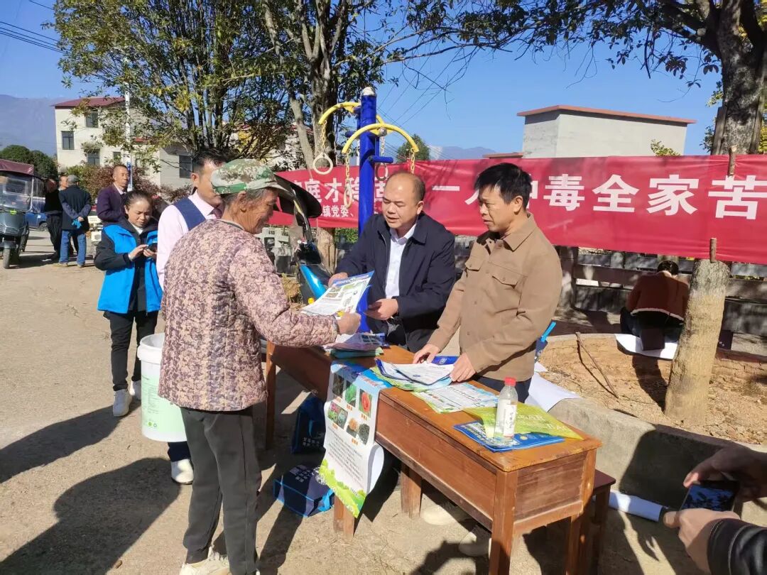 精准宣讲送知识、贴心服务暖民心。工作人员分工协作,将提前准备的禁毒宣传单,向现场群众逐一发放。针对老年人防范意识较弱的特点,工作人员重点开展精准宣讲,详细讲解“毒包裹”“毒保健品”的常见骗局,结合案例提醒老人们不轻信陌生人推销、不随意接收不明物品。现场还设置了互动问答环节,村民们踊跃参与,工作人员对提出的问题逐一解答,让禁毒知识入脑入心。