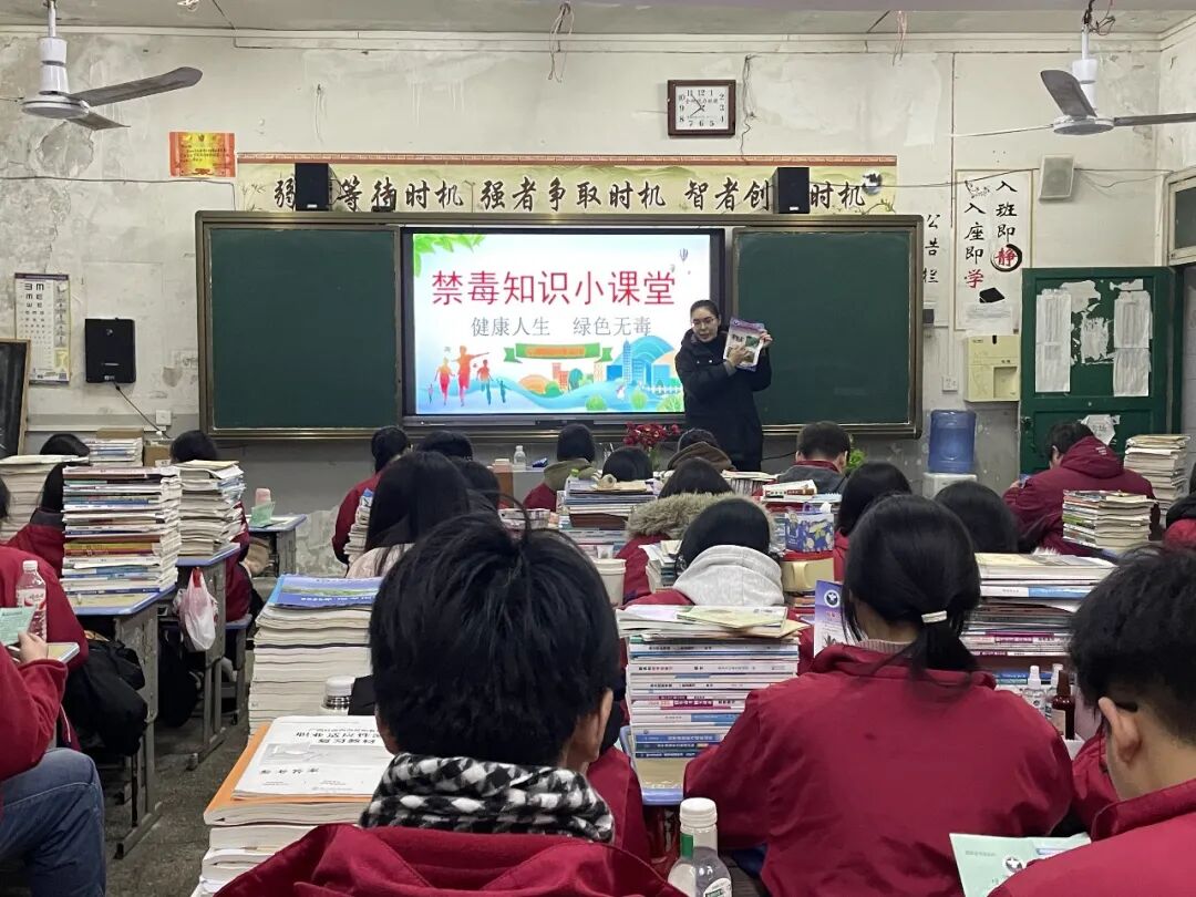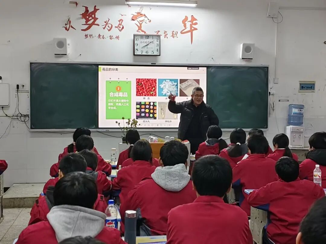 1月25日晚,石塘镇人民政府镇长、镇人大主席带领镇禁毒工作站工作人员走进石塘中学,利用晚自习时段开展禁毒知识专题宣讲,以“宣讲+互动+宣誓”的沉浸式教育模式,将禁毒知识送进课堂、融入日常。