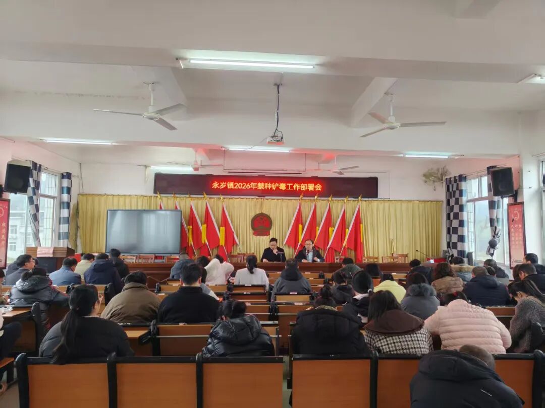近日,永岁镇召开 2026 年禁种铲毒工作专项部署会,全面启动全镇禁种铲毒专项行动。会议紧扣 “零种植、零产量” 核心工作目标,对全镇禁种铲毒工作进行系统部署,明确人员分工、细化包片分区,构建 “主要领导负总责、班子成员包片区、镇村干部包村组、网格员包点位” 的四级网格化责任体系,层层压实属地管理责任,形成上下联动、全域覆盖的工作格局,为专项行动落地见效划定清晰路线图、压实闭环责任链。